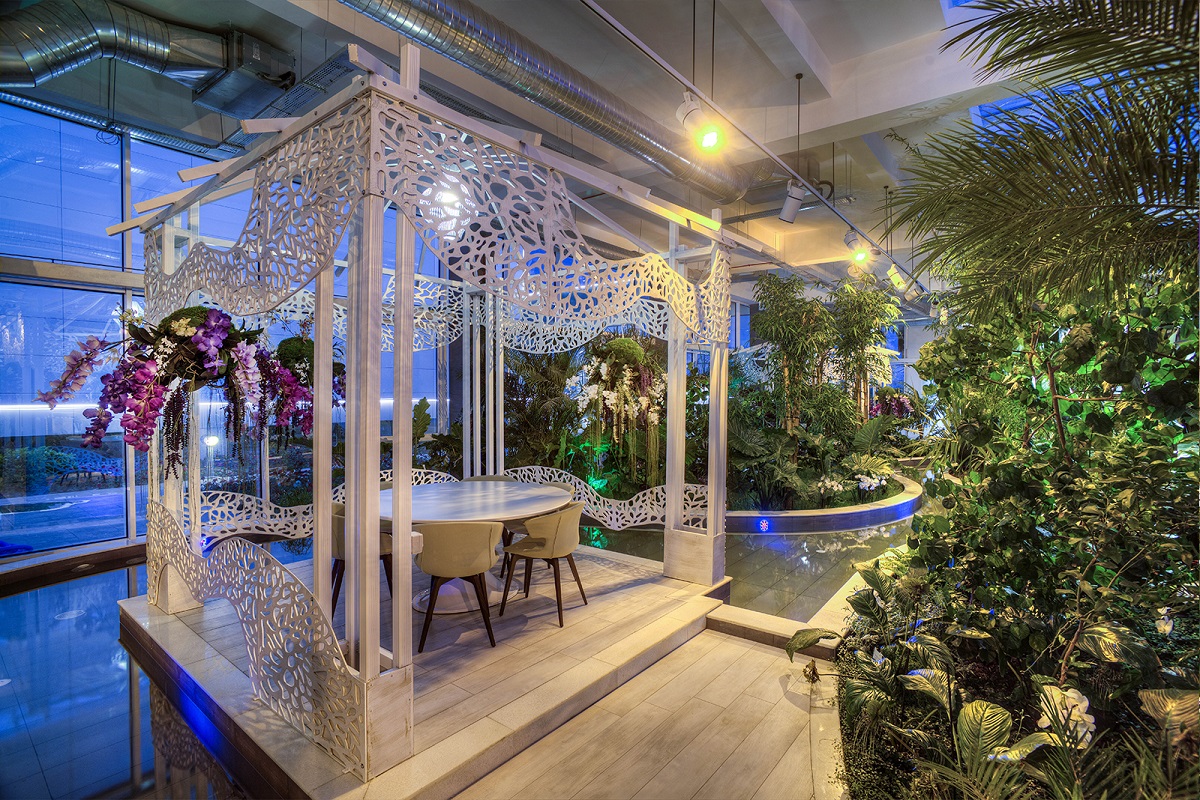 Orxideya Evi – Belə bir məkan Azərbaycanda ilk dəfədir yaradılıb. Burada, həmçinin 150 nəfərlik qonaq qəbulu və müxtəlif tədbirlərin yüksək səviyyədə keçirilməsi üçün nəzərdə tutulmuş restoran fəaliyyət göstərir. Bu məqsədlə tam təminatlı mətbəx, manqal otağı, təndirxana və soyuducu kamera sistemi yaradılıb. Orxideya zalının tərtibatı xüsusi zövq və dizaynla hazırlanıb. Burada müxtəlif ekzotik gül və ağac kompozisiyalarından, rəngarəng orxideya növlərindən istifadə olunub. Orxideya Evində su – kanal sistemində su dövr edir. Bitkilərin təbii işıqlandırılması üçün tavan şüşəlidir.